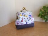 リバティタナローン生地と帆布を使用し、がま口ポーチを作りました。