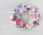 ピンクのバラとさくら色のリース:母の日フラワー 母の日 ウェディング バラ ローズ 白 パープル ブルー