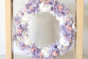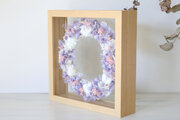 淡いパープルに甘いピンクを合わせて優しく仕上げたガラスフレームです。