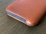使用している革は、イタリアのトスカーナ州にあるコンツェリア・ラ・ブレターニャ社で製造されているイタリアンショルダーです。100%染料のみで仕上げられた自然な色ムラと天然のシボ(シワ)、適度なハリと柔らかさが特徴です。