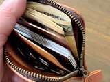 コンパクトサイズなのに二つ折りのお札とカードやコインがたっぷり入りますよ!