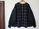 終了★コットン100%先織ブラックウォッチ柄 異素材配色ブラウス★