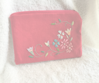 花刺繍のフラットポーチ~チェリーピンク~