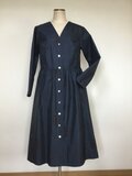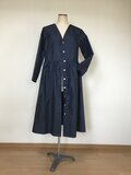 紺色の地色に小さな柄模様が織られた上品な大島紬のワンピースです。