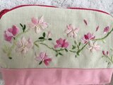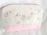 アイボリーの刺繍用布地に刺繍を施したポーチです。