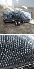 ばあば作☆大きめ・総ガラスビーズのスクエアがま口(metal black・1393)