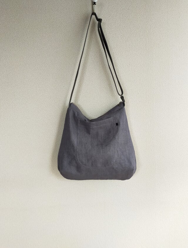 リトアニアリネン·グレー色を使いななめ掛けショルダーバッグを作りました。