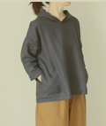 トリプルガーゼのふんわりとした風合いがパーカーのデザインにマッチしています。重ね着にもおすすめですので、長い季節お楽しみ頂ける一枚かと思います。