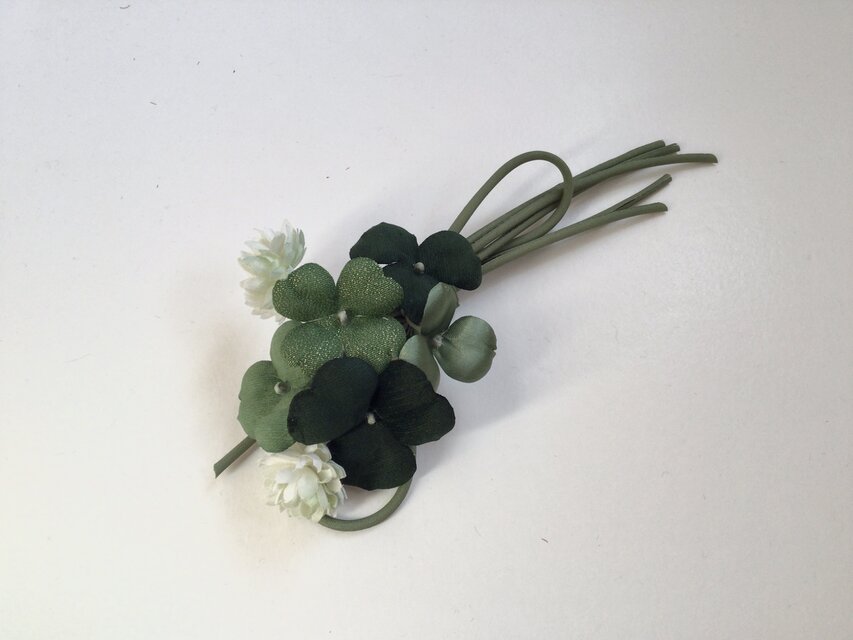 斜茎を作りつけてありますので趣きのあるコサージュです。