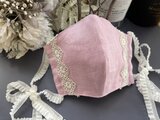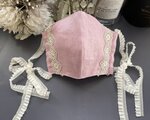 ピンクカラーの美しい極薄のリネンを本体に使用し、白金カラーのレースをポイントにつけたマスクです。