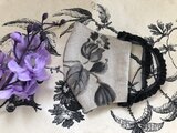 インポート生地 麻と黒とラメの花柄の生地の手作りマスク マスク