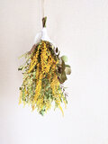 ミモザとユーカリ、スターチスの素朴でレトロなドライフラワー・スワッグ!