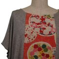 レトロな柄、懐かしい色合いのフレンチスリーブのトップスとなります。