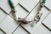 グリーン~茶色がかったターコイズは、1粒1粒お色が違っていて、それだけでも表情豊かなネックレスに仕上がっているかと思います。