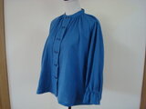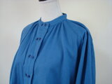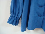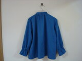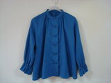 前後衿元にギャザーを寄せ、前立てには小さ目ボタン(ブルー系)を