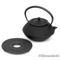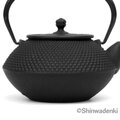 【お取り寄せ】南部鉄器 鉄瓶兼用急須 小鉄瓶 アラレ(黒)0.5L 茶漉し付 内面素焼き・酸化被膜仕上 ガス対応