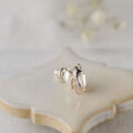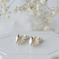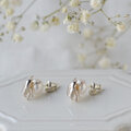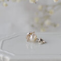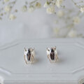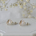 上品なパールに、ハナムグリがぎゅっとしがみついてるユーモラスなピアスです。