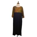 色や柄がバイヤスに切り替わるデザインの着物生地を横に利用したハイウェストのロングワンピースとなります。