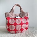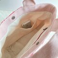 小花柄のかわいい生地とピンクのビンテージ風帆布を使って