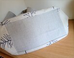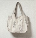 柄部分はコットンリネンです。無地部分はリネン生地です。内側の生地は無地のコットンリネンテンセル混紡素材です。
