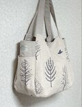 持ち手以外の部分にはすべて芯地を使用してしっかりと仕上げています。持ち手も生地を4枚重ねにして、丈夫に仕上げています。持ち手は長めにしていますので、肩掛けも可能です。