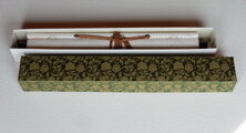 本格的な表装形式で、裂もそれなりのものを使用しておりますので、床の間に飾っていただき菖蒲などの花を添えていただければ、結構な見映えとなります。