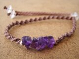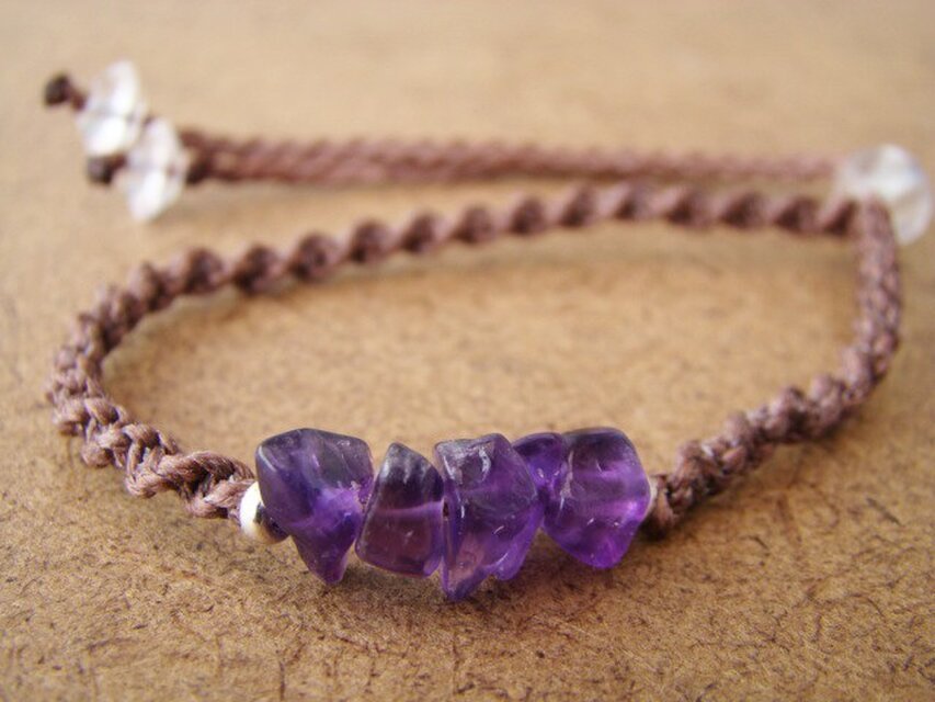 天然石(パワーストーン)アメシストとSILVER925のビーズをロウビキ紐を使ってマクラメ編みしたブレスレットです。