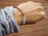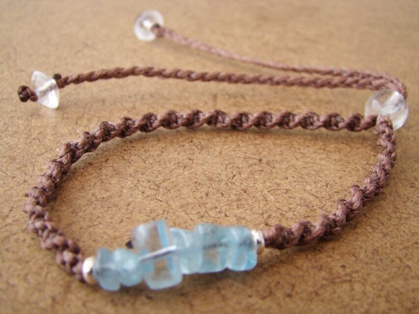 天然石(パワーストーン)アクアマリンとSILVER925のビーズをロウビキ紐を使ってマクラメ編みしたブレスレットです。
