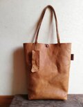 simple tote 縦長 ブラウン オイルシュリンクレザー