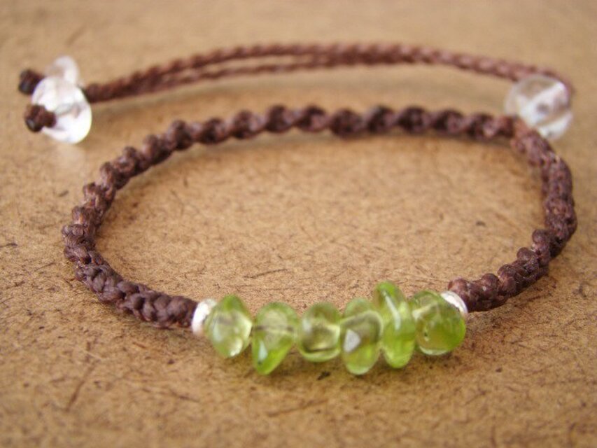 天然石(パワーストーン)ペリドットとSILVER925のビーズをロウビキ紐を使ってマクラメ編みしたブレスレットです。