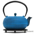 【お取り寄せ】南部鉄器 ティーポット 急須 平丸千筋 0.7L 青 日本製 内面ホーロー加工