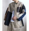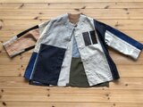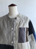 麻、綿デニムを中心に、生地をパッチワーク状に組み合わせたジャケットです。