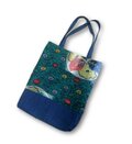 底の部分と持ち手に紺の紬を使った、縦長のトートバッグ。