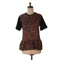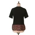 コーラルピンク地が魅力的な小柄の型染めで制作したフリルTシャツとなります。