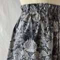 ウエストは総ゴムですが、腰回りのボリュームを抑え、腿からフレアになる、きれいな形の仕立てです。