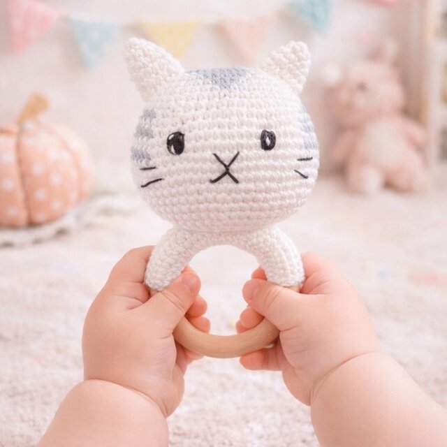 おもちゃ ねこ ガラガラ ラトル 0歳 男の子 女の子 編みぐるみ 出産祝い