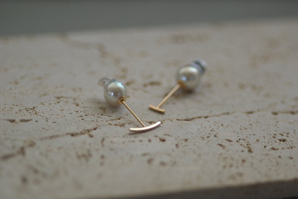 付属のあこやパールハネ玉キャッチをつけると前からも表情豊かなパールがちらっと覗きます。