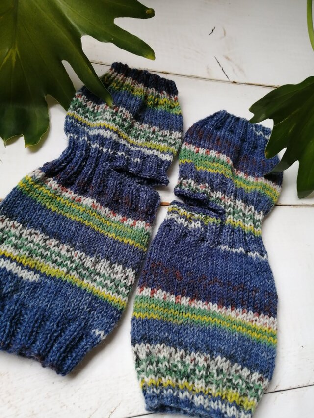 爽やかなネイビーカラーの、手編みのヨガソックスです。