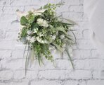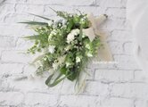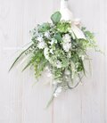 ユーカリやアスパラガスなどのグリーンがメインで 白いスターチスの花などがアクセントです