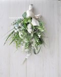 グリーンとホワイトで色を抑えていますが すこしワイルドにグリーンが広がり 存在感のあるスワッグです