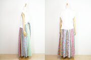 いろんな色柄のリバティをたっぷりとつなぎ合わせた、贅沢なスカートです。