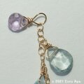 その脇にスカイブルートパーズのドロップブリオレットカット、宝石質アクアマリンAAAのペアシェイプブリオレットカット、最後にアクセントになるように、宝石質ピンクアメジストAAAのマロンファセットカットを下げています。