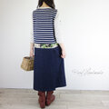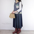 しっとり柔らかで大変上質なボーダー天竺ニットにブラックデニムとインディゴデニムを合わせて、