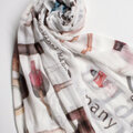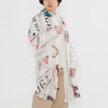 丸枡染色にある染色道具や部品の一部を柄に取り入れた柄は、大胆なグラフィックが魅力的で遊び心満点です。総柄のため、裁断する部分で1枚ずつ柄のパターンが異なります。ふんわり一重巻きにしても、正方形のサイズにしてコンパクトに巻いてもOK。コットン100%の素材なので、お家で手洗いができます。夏の冷房対策にもおすすめです。