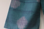 ・エメラルドブルーのようなオーシャンブルーのような色地に丸柄 薄手銘仙 絹100%