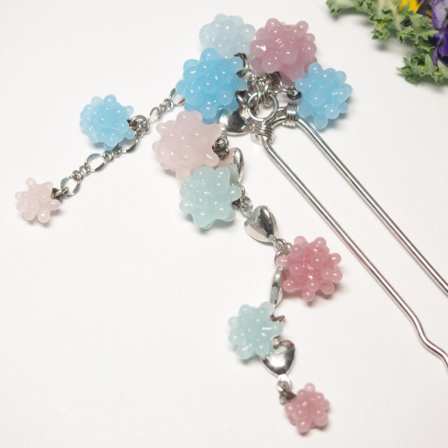 こんぺいとうかんざし ピンク系✕水色系