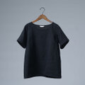 【LLサイズ】【wafu】ふわっと 軽くやさしい 雅亜麻 Linen Top リネンTシャツ /黒色 p015a-bck1-LL