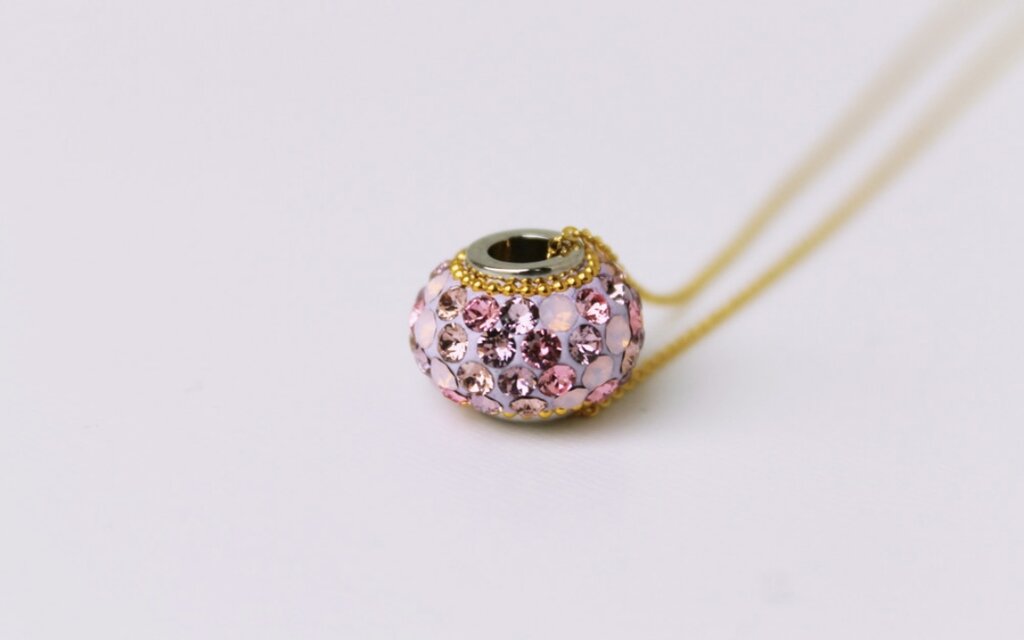 つけるだけでプリンセス気分になれるような華やかで優しいラベンダーピンク色のロンデルネックレスです。