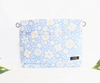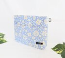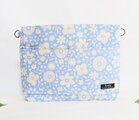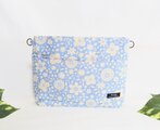 爽やかスモークブルー地に生成り色の小花が舞う柄、綿リネン地の2Wayタイプのクラッチバッグです。
