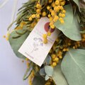 ほのかに良い香りが漂う2種類のユーカリに、丸くて黄色いお花のミモザを合わせたミニスワッグです。